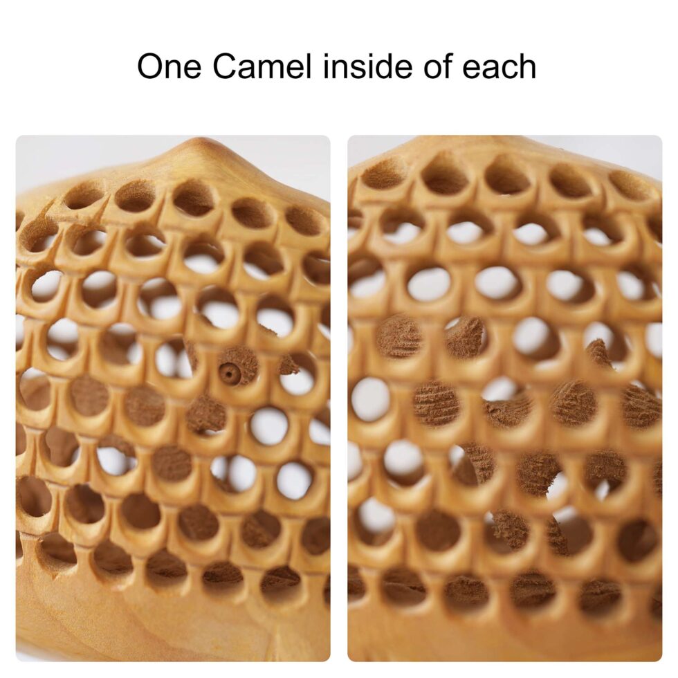 Embrace the mystique of the desert with our handcrafted wooden camel figurine. Carefully carved from premium wood and adorned with intricate details, this piece captures the grace and beauty of the iconic desert dweller. Whether displayed on a shelf, mantel, or desk, this figurine adds a touch of exotic charm to any space. Each curve and contour reflects the artisan’s skill and dedication, making it a unique statement piece for your home or office. Bring the allure of the desert sands into your d?cor with this stunning wooden camel figurine.